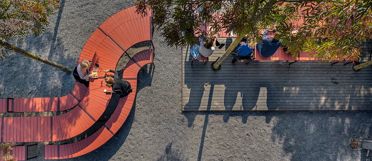 The Långbordet is an environmentally assessed modular bench table system that can be built lengthwise and in circles for adaptation to different environments and contexts according to the settings of a landscape. The table winds its way between the trees and brings visitors together for joint outdoor activities such as lunch, coffee breaks, studying, flea markets, play and much more. The new location in Södermalm brings about meetings and conversations that emerge around the table, which contributes to community and safety for both residents and visitors in the neighbourhood.