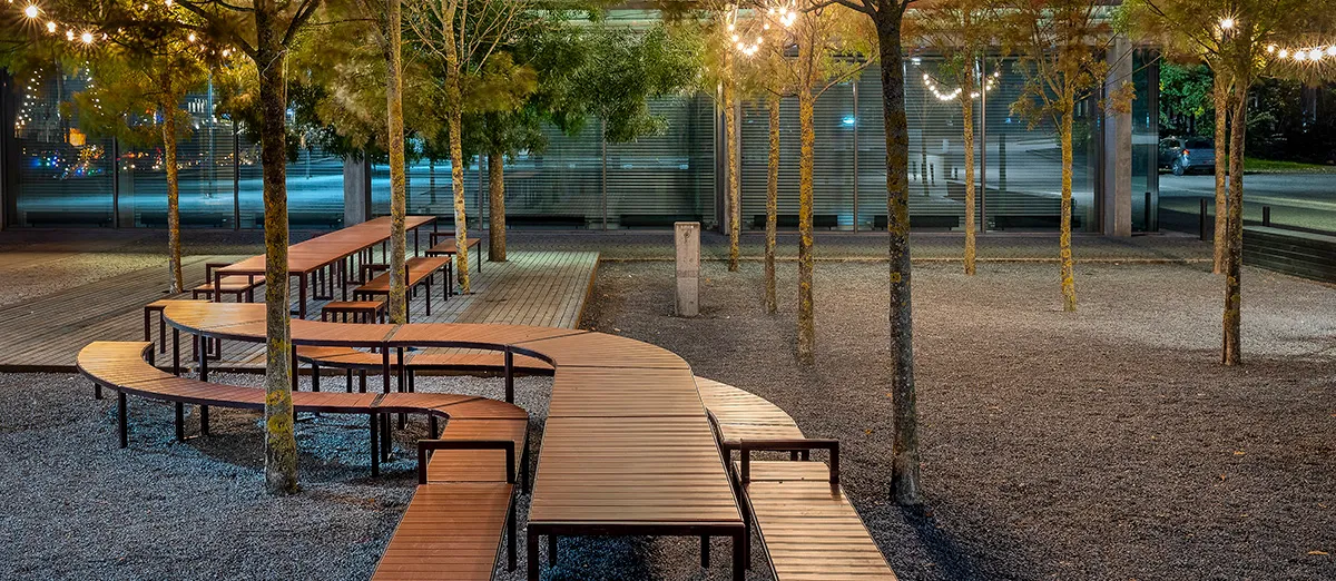 The place was commissioned by Folksam and designed by landscape architects Cecilia Jarlöv and Josefin Norén Almén from White Architects, with lighting design by Clara Fraenkel, White.