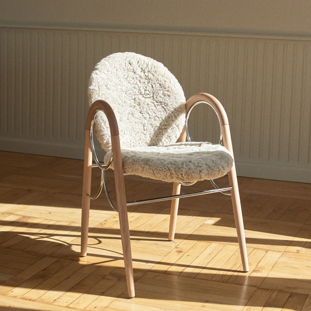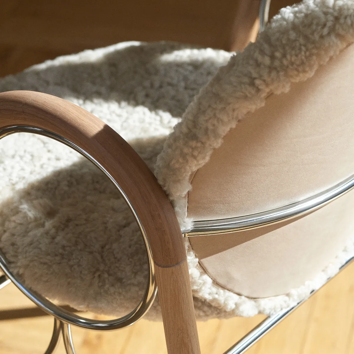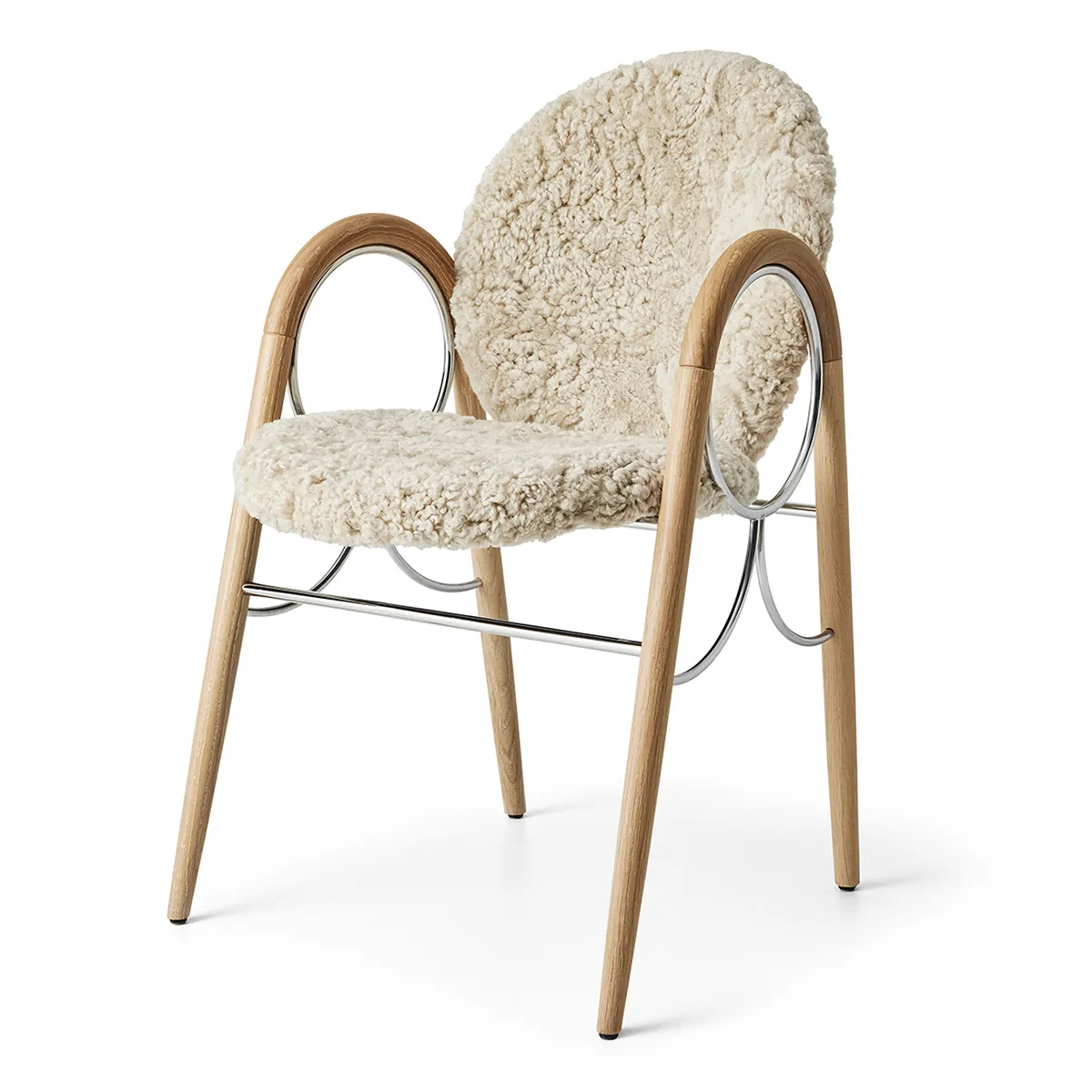 The Anniversary Edition is created in white oiled oak, supported by a chrome frame, with a back of Sørensen leather and a seat of Australian sheepskin. Complete with a silver engraving of authenticity, the chair is a tribute that celebrates Ditzel’s expressive design style.