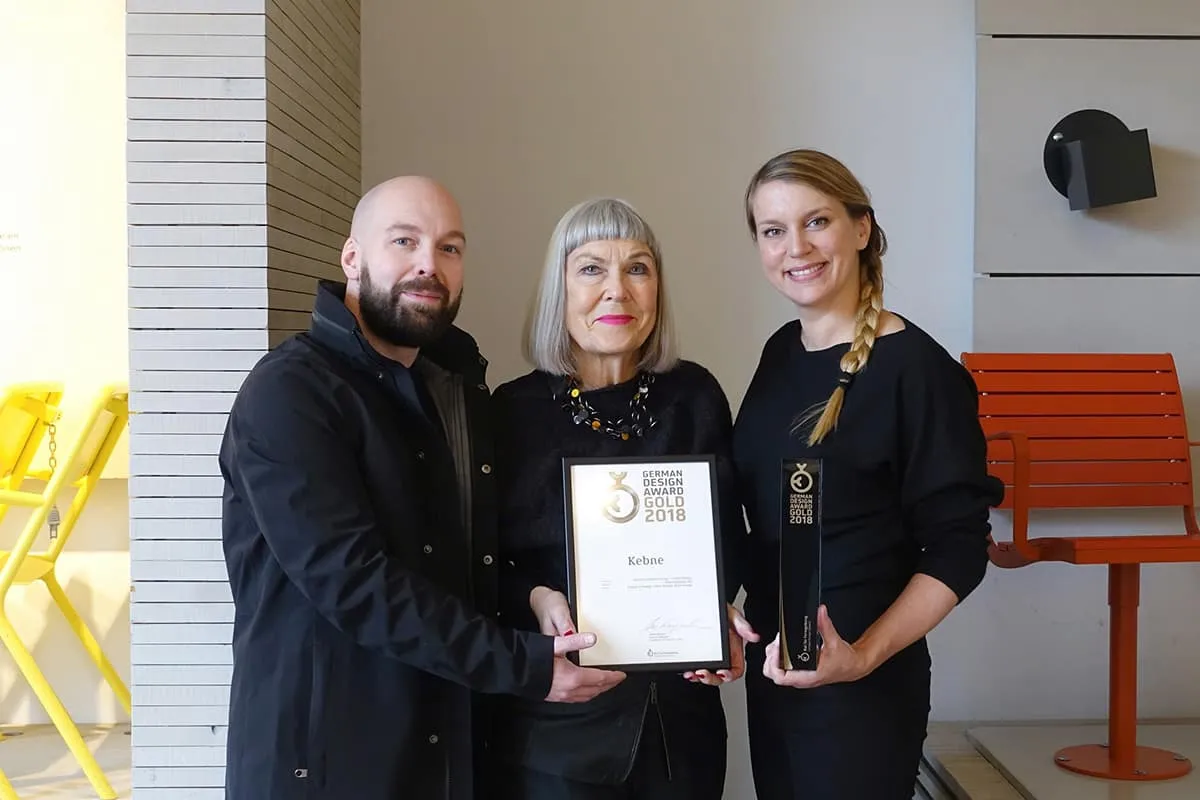 Last week we were delighted to attend the German Design Award 2018 ceremony, held by the German Design Council in Frankfurt am Main. More than 1,300 guests attended the event. It was a great honor for Kauppi & Kauppi to receive 2 amazing Gold Awards and 1 Winner Award in the section of Excellent Product Design – together with our fantastic collaboration partners Nola Industrier and Glimakra of Sweden.