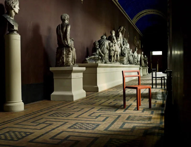 The NON chair has achieved significant recognition within the design community beyond awards. The Museum of Modern Art in New York acquired the chair for its permanent collection in 2004, recognizing its contribution to contemporary furniture design. MoMA’s collection includes both the NON chair and Komplot Design’s GUBI chair, with both pieces selected for the museum’s interior spaces designed by architect Yoshio Taniguchi. The NON chair has also furnished various prestigious locations, from private residences to public interiors and cultural institutions worldwide, including Max restaurants designed by Wingårdhs.