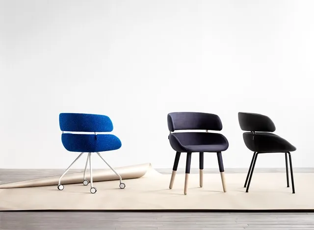 Comfort in a small space. Neatness in a solid chair. Soft lines with an indulgent gap in the back. The ability to fit into any environment, thanks to its different materials and colours.