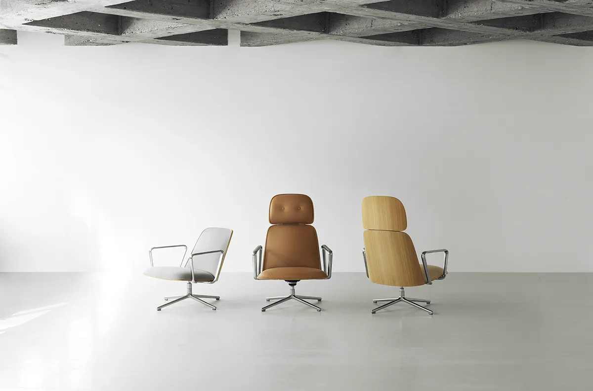 The Pad lounge chair series welcomes the newest addition: Pad lounge chair with a swivel base and a gaslift function, offering extra comfort and mobility.