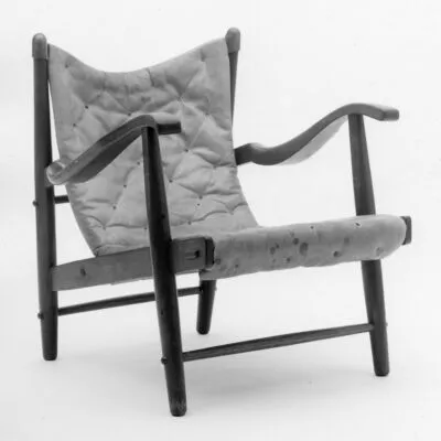 The first design by Wegner ever to enter production was a low comfortable easy chair with a very expressive and daring construction. It was introduced at the Cabinetmaker’s Guild’s Autumn Exhibition in 1938 and was made by cabinetmaker Ove Lander. The basic concept of this chair seems to have become a role model for the later creation of the pp16.