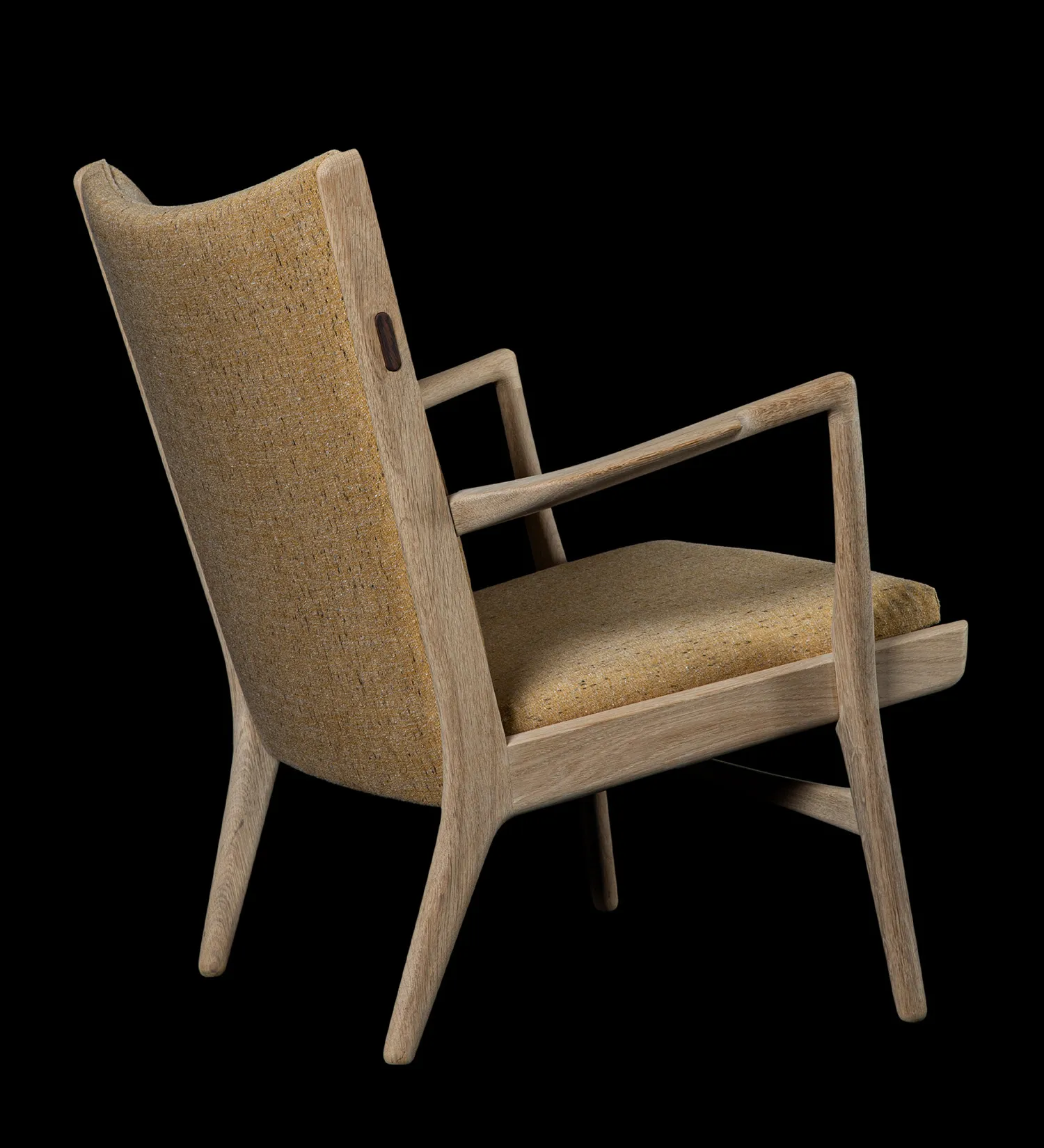 The arms are slim, but carefully shaped to provide adequate support while inviting to sense the joy of solid wood. The back is upholstered with internal springs, the seat is supported by suspended springs, and both are fitted with horsehair and cotton for optimal comfort and durability.