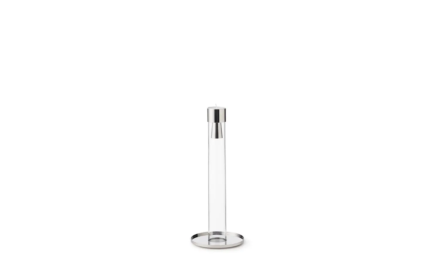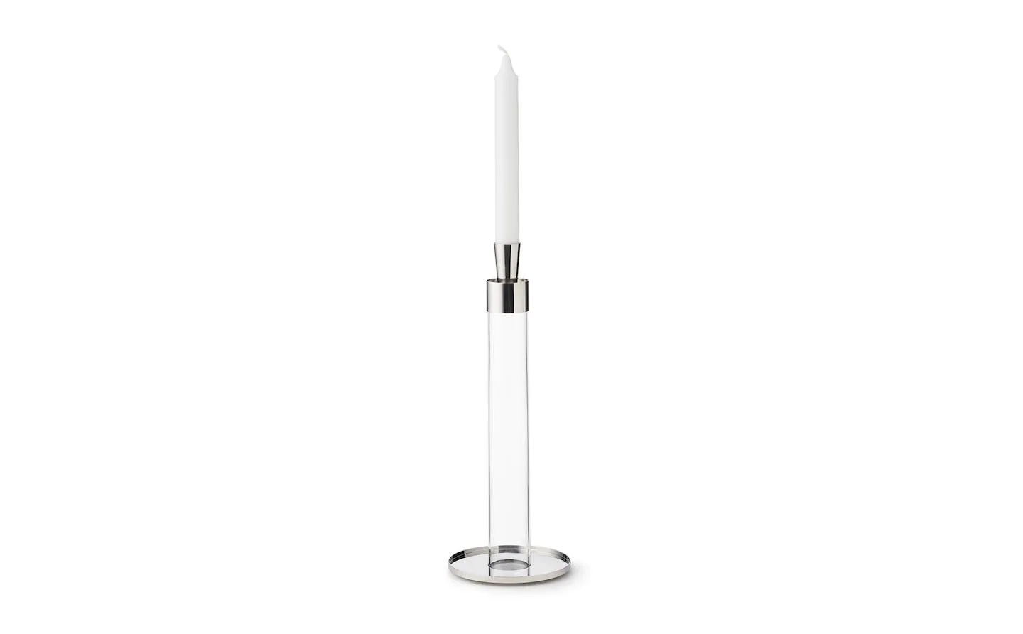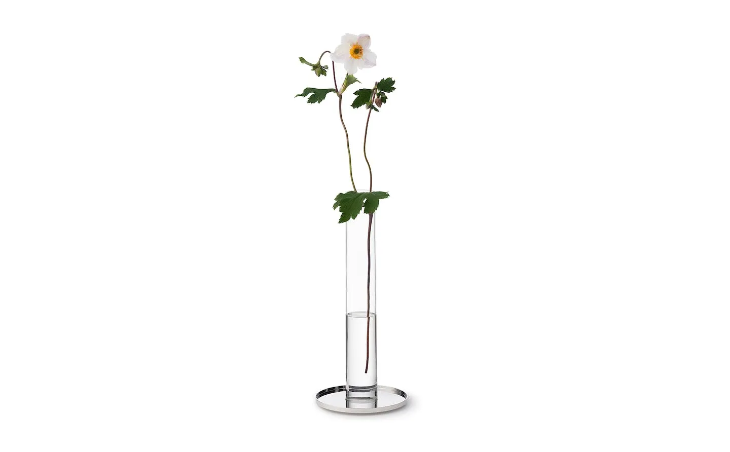 Ever faithful to her habit of keeping a flower at her bedside, Råman explored different interpretations of the same concept between 1968 and 1995, a slim single-flower glass vase, with a clever reversable insert transforming it into a candleholder.