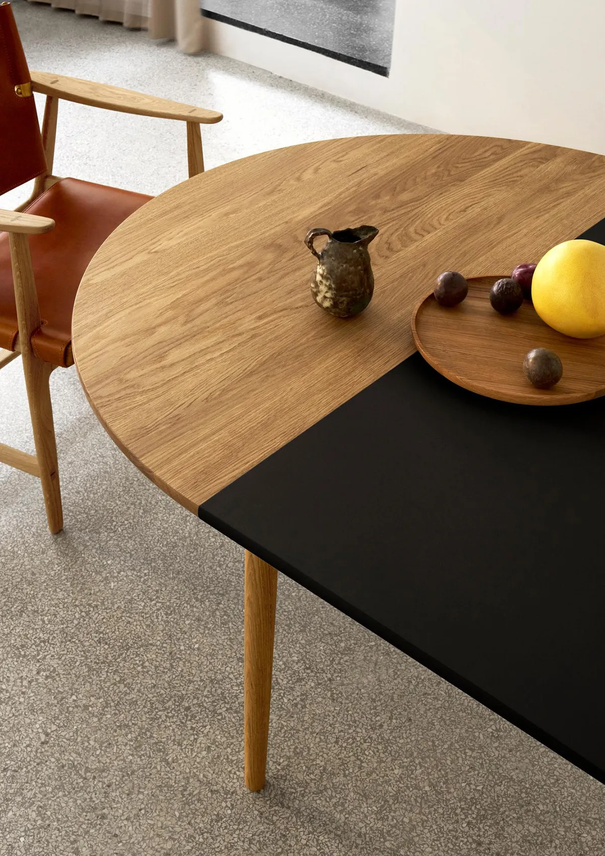 Børge Mogensen presented the BM0121 dining table in 1952 at the Arts and Crafts Spring Exhibition in Copenhagen, Denmark, as part of a democratic furniture series designed with small homes in mind. Carl Hansen & Søn is now relaunching this functional table, which is the first circular extendable table in the collection.