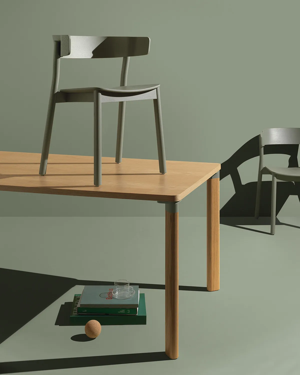 The chair, designed by Sami Kallio, marks the first seating in our product line and has a shape that seemingly embraces its user with its armrests. This graceful feature makes the chair both stackable and hangs steadily on a tabletop.