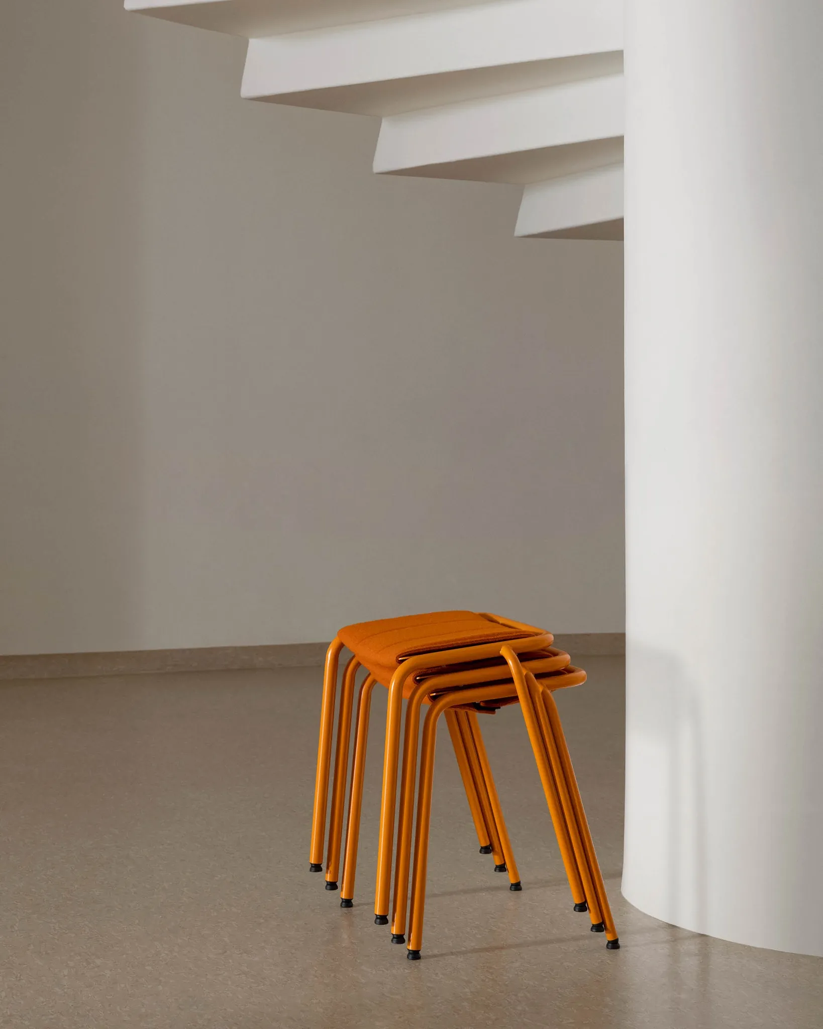 Designed for movement and change, the gap between the stool’s tubular frame and the back edge of the seat creates an integrated handle for easy moving and lifting.