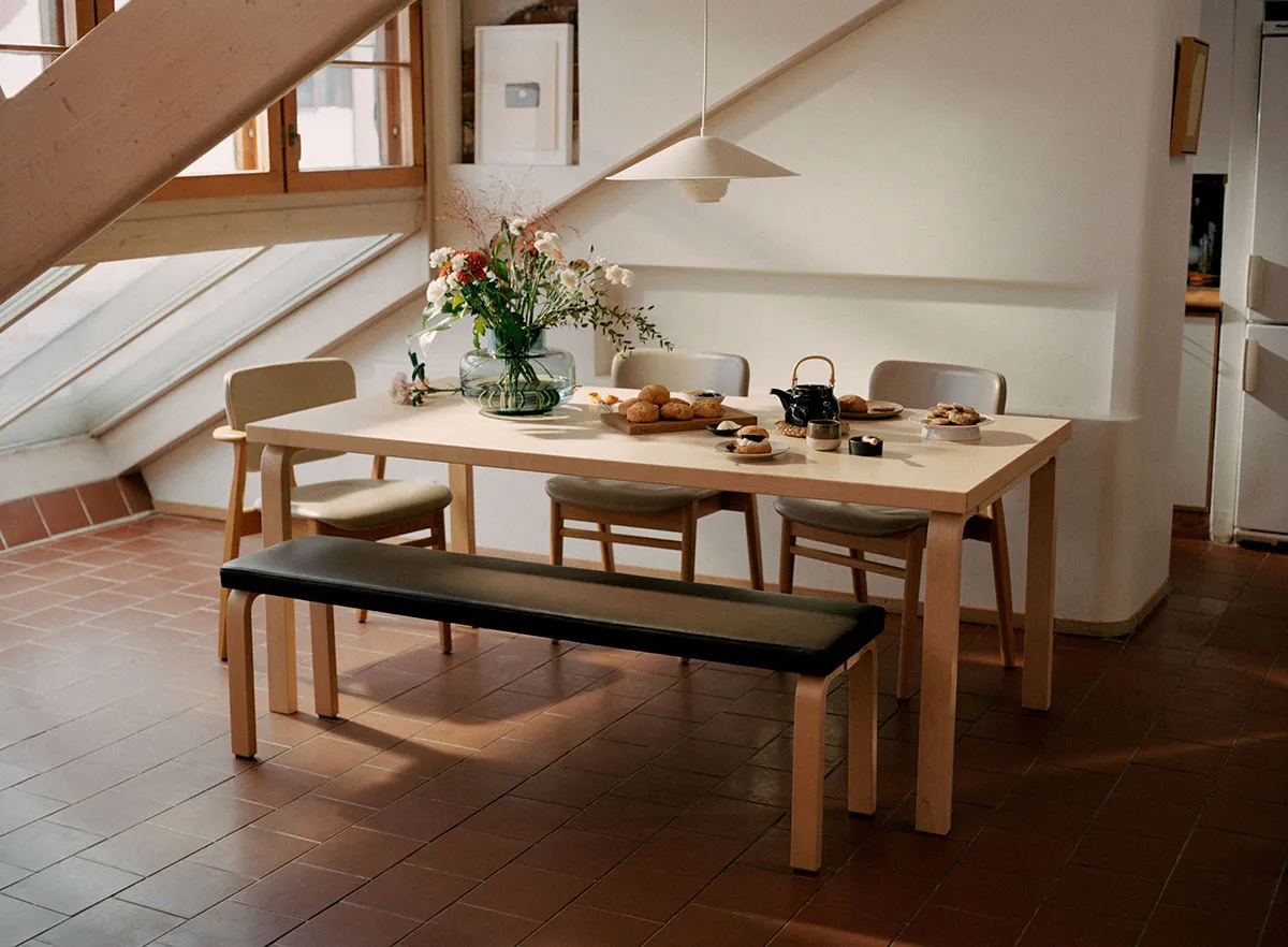Aalto Benches are functional and versatile, equally at home in the public and private spheres. Combining strength with the warm organic qualities of Finnish birch, Aalto Benches pair naturally with tables and other forms of seating. Now available in two larger new sizes and with new seat options, Aalto Benches are the perfect match for every occasion.