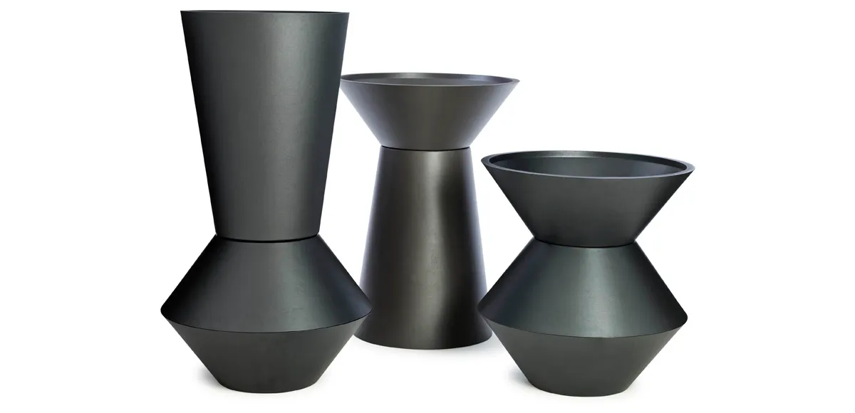 The set is based on the idea of creating a space-defining unit that can function as an individual planter or combine with others to divide space, or purely provide a decorative element. Whether placed individually or grouped together to form a cluster, the planters play a functional role as they add a sculptural aspect, blurring the boundaries between art and design.