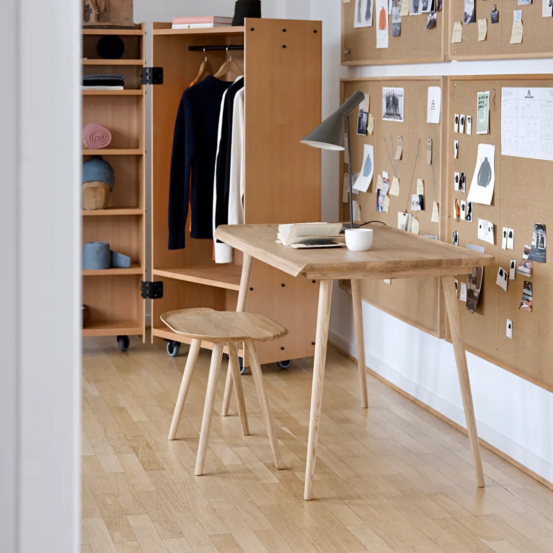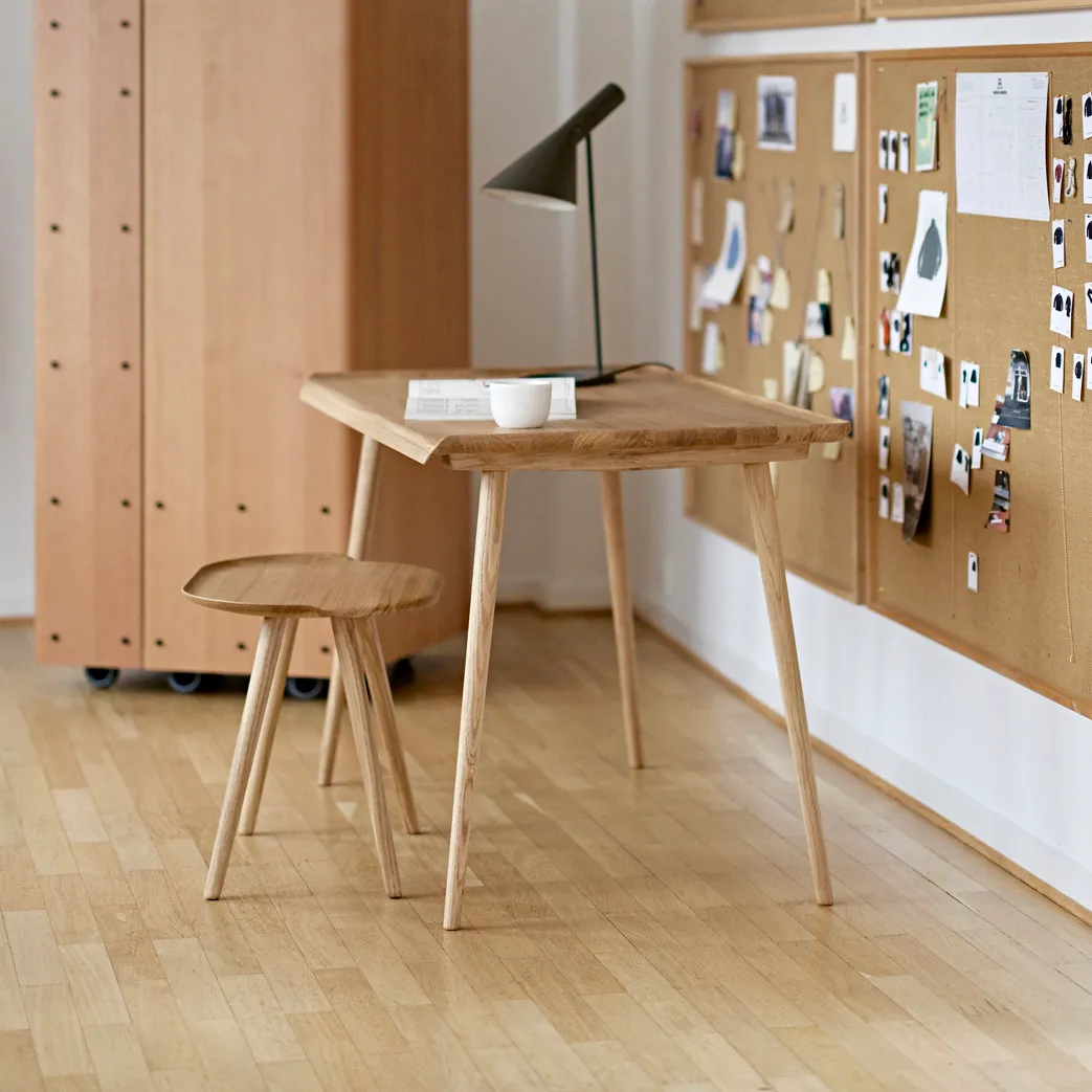 Every year, the Wilhelm Hansen Foundation awards the prestigious Finn Juhl Prize to a person who has made a significant effort within furniture design. Jonas Lyndby Jensen received the award in 2020 and Onecollection will now be manufacturing four of his designs: A stool with a circular seat and three legs, a stool with an oblong seat and four legs, a side table with a column base and a work-from-home desk. The stool with four legs and the desk are available in solid oak. The stool with three legs and the side table are available in both solid oak and solid walnut.