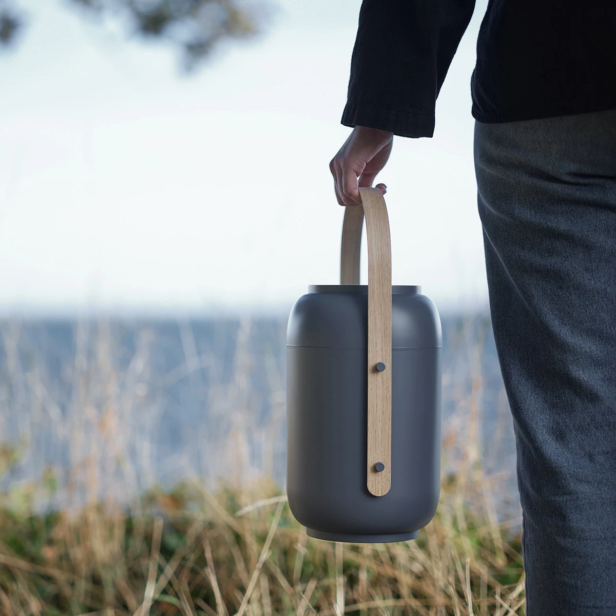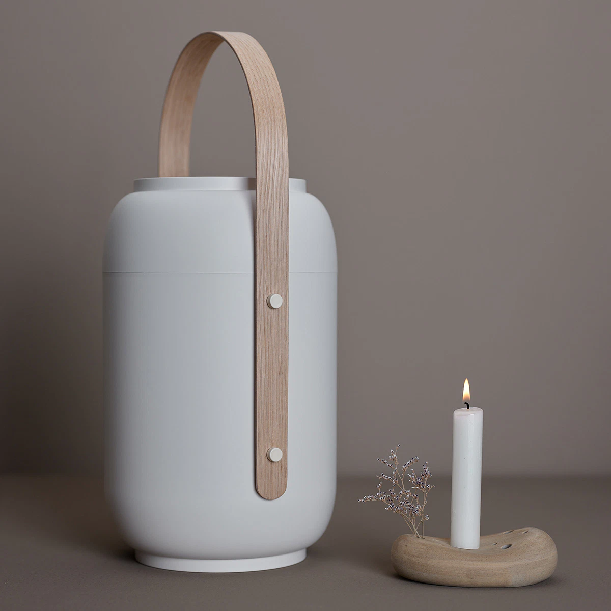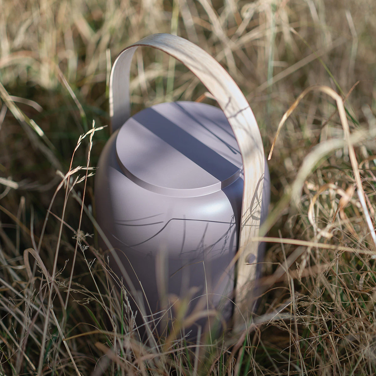 Uniquely for Akari, a wooden handle, crafted from molded oak plywood, gently embraces the urn, allowing the bereaved to carry their loved one to the final resting place and lower it into the ground with care.