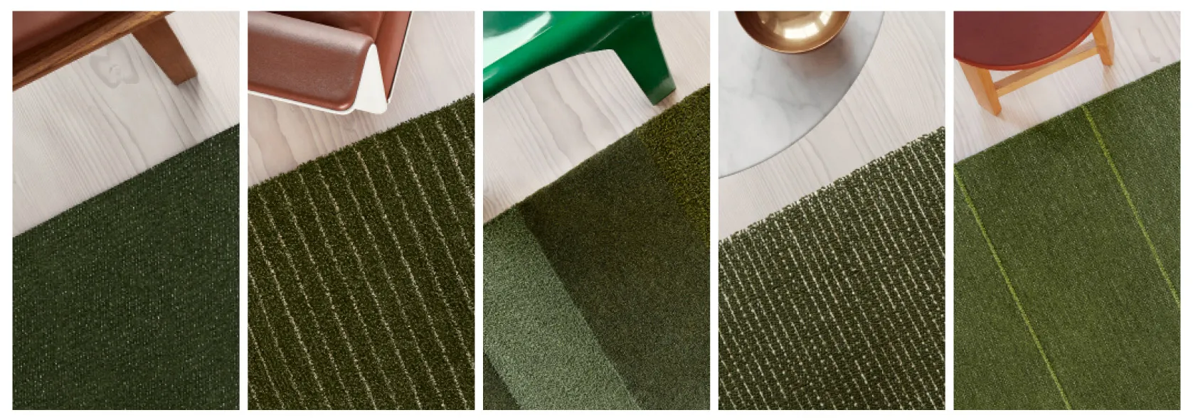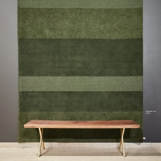 Åker is a limited edition tufted rug with horizontal block stripes of different textures, colors and techniques. It demonstrates a range of tuft types in each of its stripes – cut and loop pile, cut pile and bouclé pile, and uses a mixture of linen, wool and mélange yarns. The blocks work together to conceptualize the textures and colors found in farmland that surround the Kasthall factory in a beautiful and abstract way.