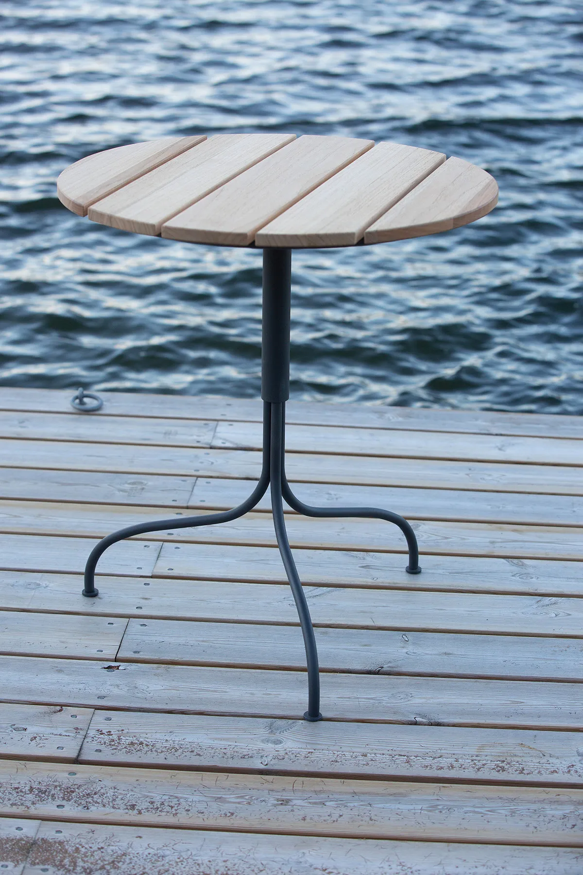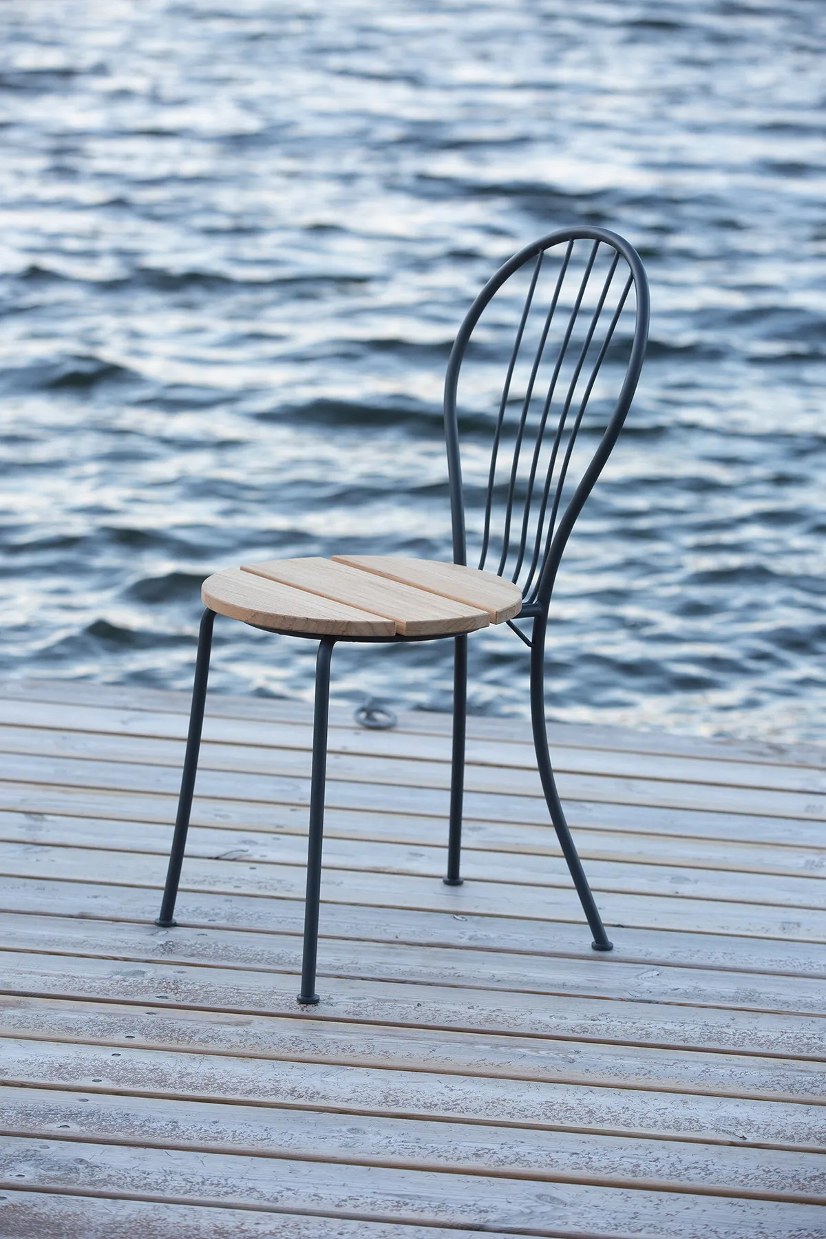 Akleja is the result of a new partnership between Grythyttan Stålmöbler and the Swedish designer Jonas Bohlin. The idea for the furniture series came about during work on Tommy Myllymäki’s restaurant AIRA in Djurgården, Stockholm, which is reflected in the material and the construction, both of which are specially designed to cope with the challenging conditions of the Saltsjön shoreline.