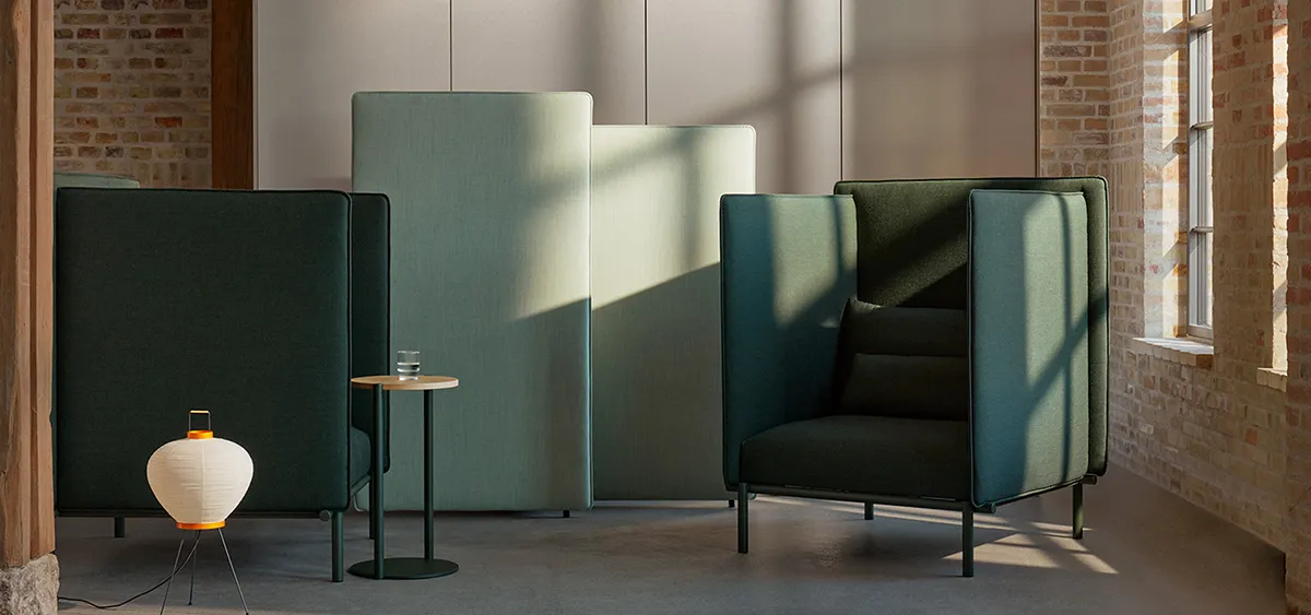 Akunok is designed for dynamic environments characterised by noise and movement, such as open-plan offices and co-working spaces. It is also ideal for furnishing lobbies, libraries and reading rooms. Or for improving the soundscape and creating spatial variety in large, open environments, such as malls, train stations, and airports.