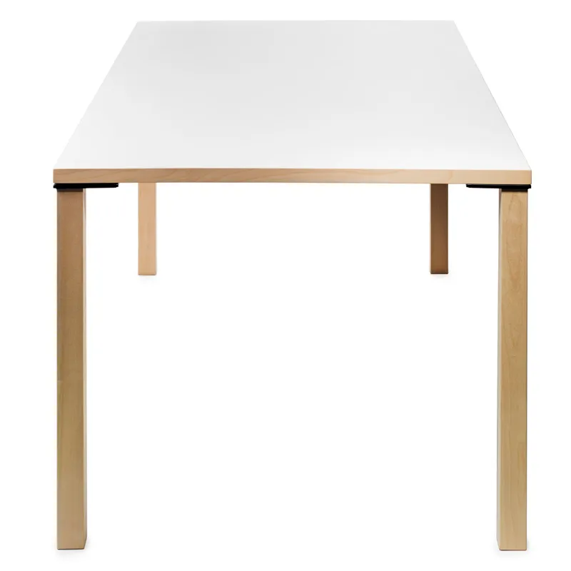 A table that complements the chair Akustik. Borderless table with a table top in natural birch, oak or stained or laminate. The top features sound-absorbent material, making the table Akustik suitable for noisy environments like restaurants/cafés, schools and libraries. Legs in solid birch or oak with sitting in moulded aluminium or lacquerd in white or black. The table is available in various sizes and can be adjusted for electric/computer installation.