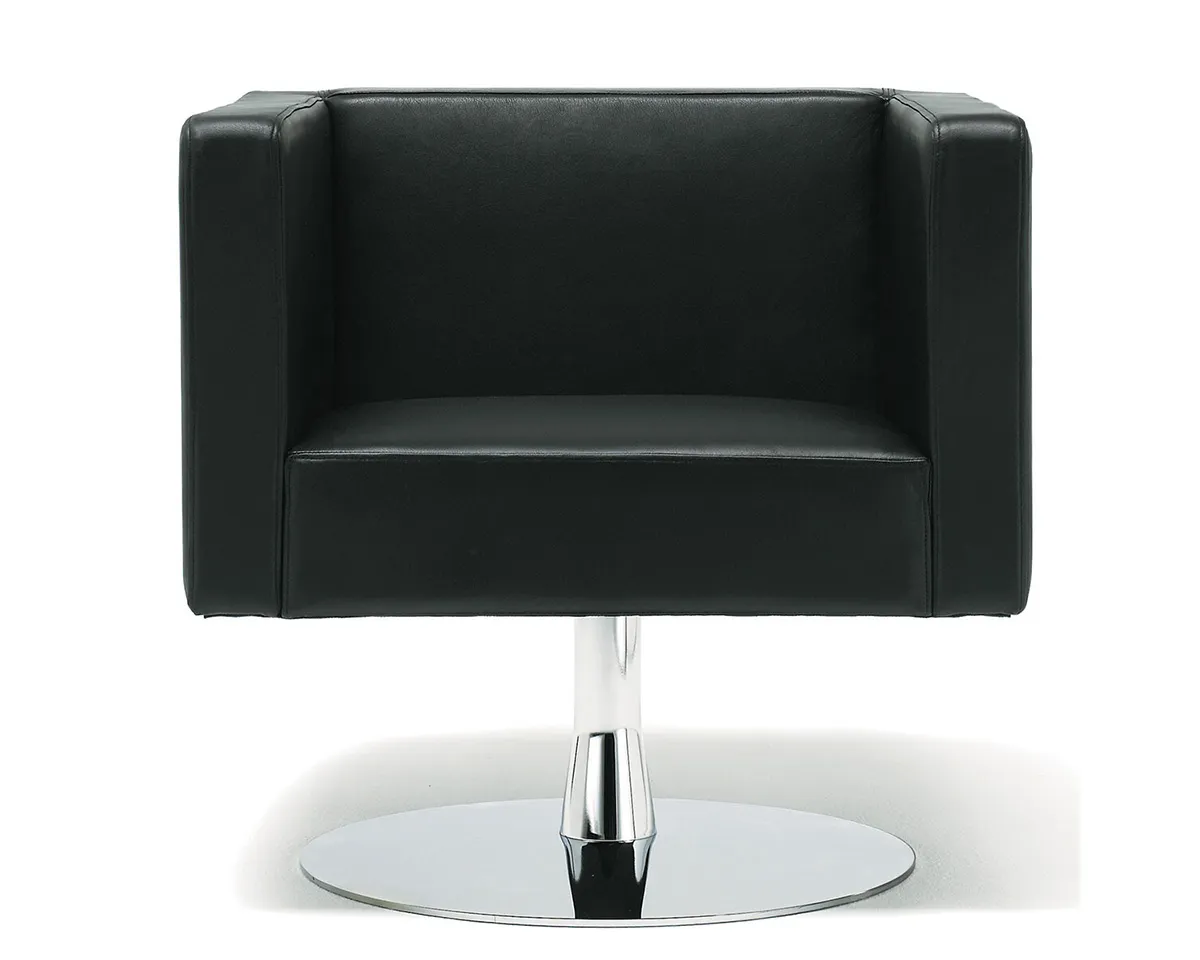 Alfredo Häberli’s new SOLITAIRE is an easy chair where one armrest is like a desktop, for writing, reading, eating or just sitting on. The freestanding chair revolves and, with its ingenious and functionally designed armrest, performs more functions than being just a seat.