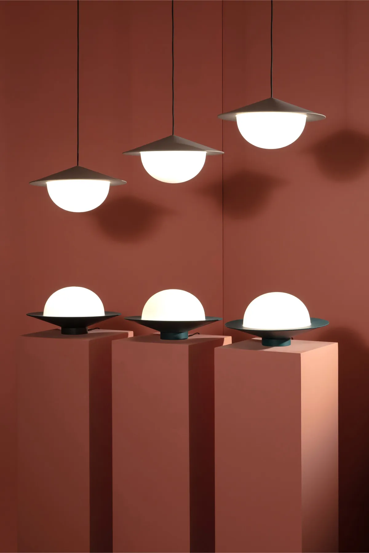ALLEY is a simple versatile modern lamp. Soft shine from the glass globes will light up above the table to bring cozy ambience. ALLEY comes with two different sizes in various orientations pendant lamp, wall lamp, tilted table lamp, and still table lamp, to fit in many spaces.