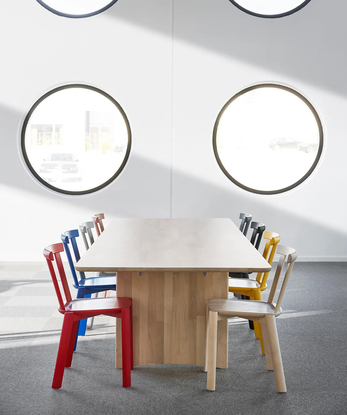 The collection contains two sizes of Alt table that comes in both finger-jointed birch and oak. The table also comes in two different sizes 320×110 and 245×110. Alt also comes in four different types of chairs, we have Alt chair, Alt chair with upholstered back and seat, Alt chair with swivel stand and Alt chair with swivel stand upholstered. Alt is available in 58 different options, which lives up to the name Alt(ernative).