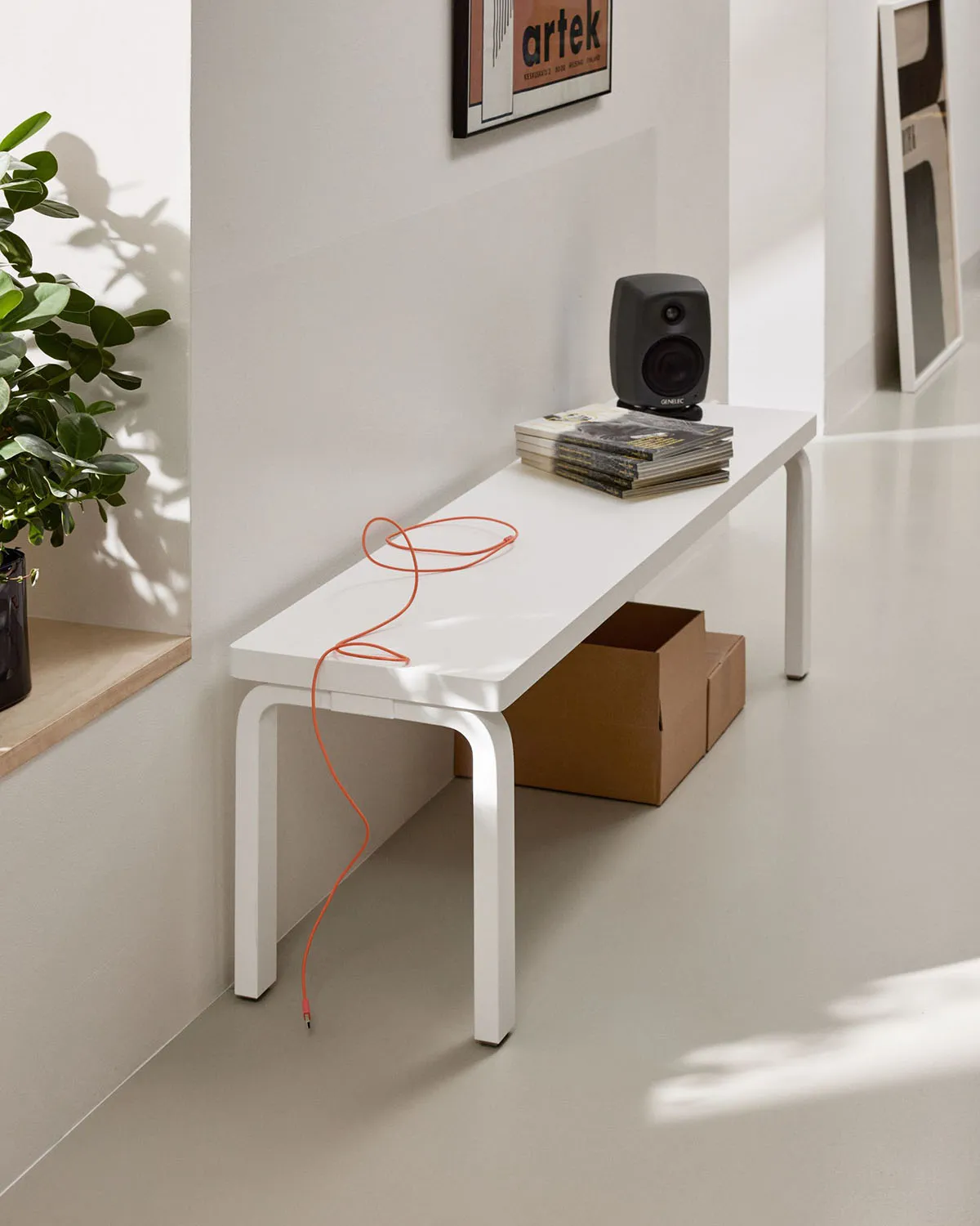 Generously proportioned and with all the virtues of an Aalto Bench, Bench168B is equally at home in public and private spheres. Versatile, the bench can serve as seating, storage or display and is equally elegant positioned standing alone, against a wall, in combination with a bed or with the rectangular Aalto rectangular table 83. Lightweight and easy to move but still sturdy enough to withstand years of service even in heavy-use environments, Bench 168B is available with a solid or upholstered top.