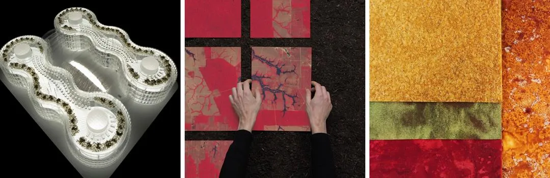 Photos: 1. Exploration Architecture, Biomimetic Office Atrium 2. Formafantasma, still from Seeing the Wood for the Trees, 2020. 3. Manuel Arias Barrantes, Thesis 4, photo Tiina Palm.
