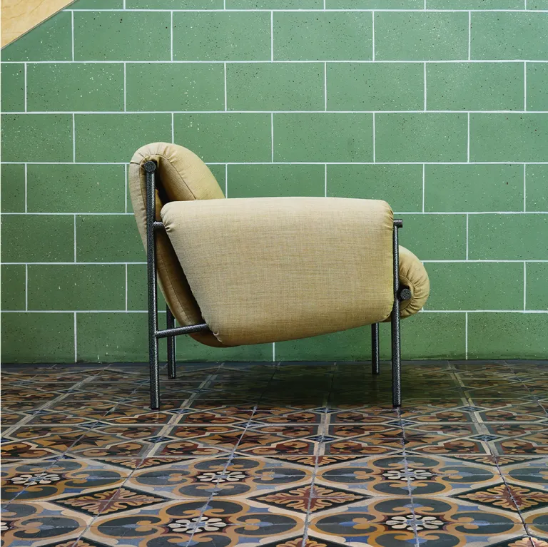 Contrast between hard and soft, fabric and steel. By decoupling the two, a bold and purposeful furniture object was born.