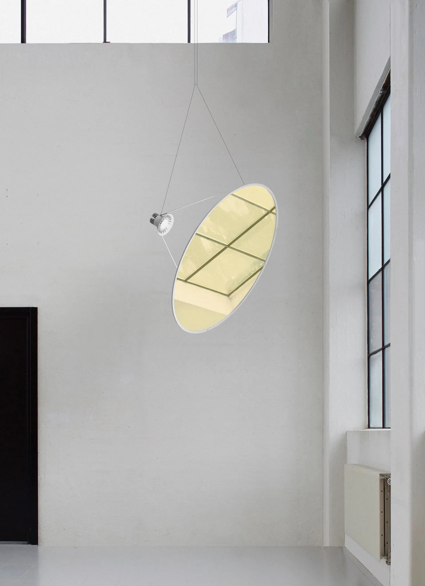 Luceplan pays tribute in Oslo to one of the world’s most acclaimed light designers of the moment, Daniel Rybakken, who is collaborating with the brand since many years giving birth to iconic pieces such as Counterbalance, and Ascent, both winners of Compasso d’Oro Award in 2014 and 2016. The latest novelty by Rybakken is Amisol, an evocative lighting solution, halfway between design and art, that occupies a large physical space with a minimal volume, for easy orientation in space. The pendant light features a translucent white film or metallized mirror membrane stretched inside a circular aluminum profile. Like a solar sail, a light source connected to the disk with thin rods, projects a beam of light onto it. Blending technological innovation with impeccable aesthetic refinement, Amisol perfectly embodies the spirit of Luceplan.