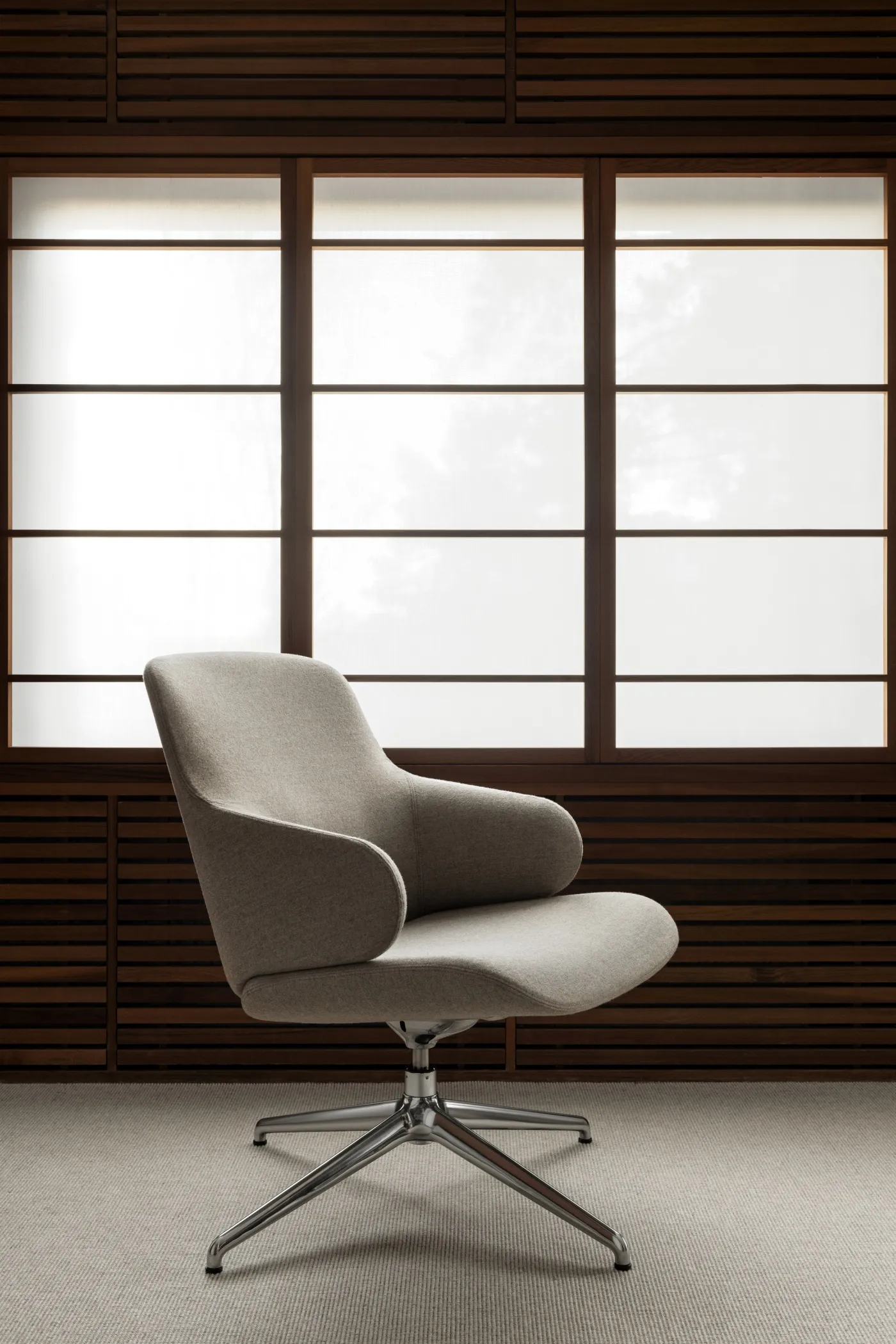 Amstelle armchair is one of several pieces of furniture in the Amstelle family, which consists of chairs, armchairs and poufs, all designed by Khodi Feiz. Taking inspiration from the ebb and flow reminiscent of meandering rivers, particularly the Amstel in the Netherlands, the Amstelle family gained its own distinct signature. The Amstelle series fits equally well into public and private spaces. The Amstelle armchair is available with a 4-star swivel base in aluminium, steel legs and wooden legs in oak or ash and is available in several different surface treatments. The armchair’s seat and back have a steel framework and the padding is in molded foam.