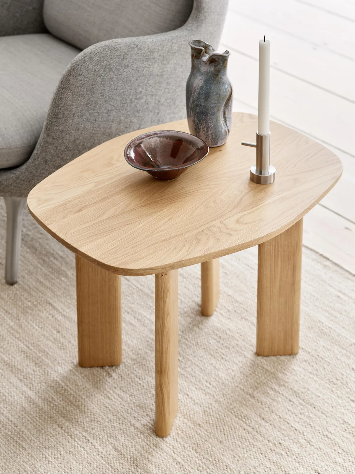 Beautifully complemented by Fritz Hansen’s lounge designs, the new pieces emphasise the purity of form and materials. The Analog coffee table is available in two configurations; clear lacquered walnut and light-beige coloured ash tabletops set on solid walnut and ash legs respectively, while the side table is offered in solid oak, and is FSC™-certified. Analog’s characteristic legs are attached at an angle to the tabletop using an aluminium trumpet joint, named after its resemblance to the bell of a trumpet and designed to create a smooth transition between the two design elements.