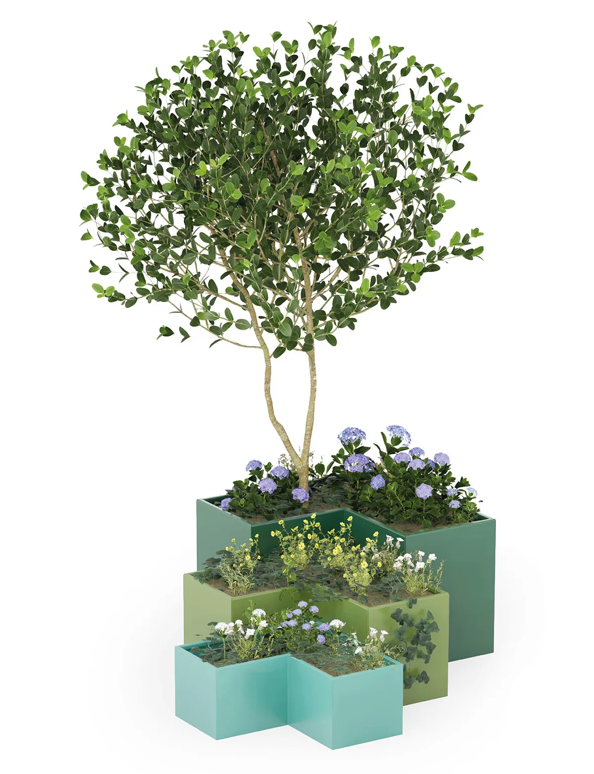 Angle enables a modern reinterpretation of a baroque garden, if one desires, with its angles and varying heights in various perspectives. With three different sizes and volumes, Angle is like an architectural puzzle with nearly limitless possibilities. Together, the parts can create the most imaginative formations. Angle can be placed as sections or create spatial divisions in places such as parks, courtyards, or urban landscapes. The different heights allow for varied vegetation, from shrubs to small trees.
