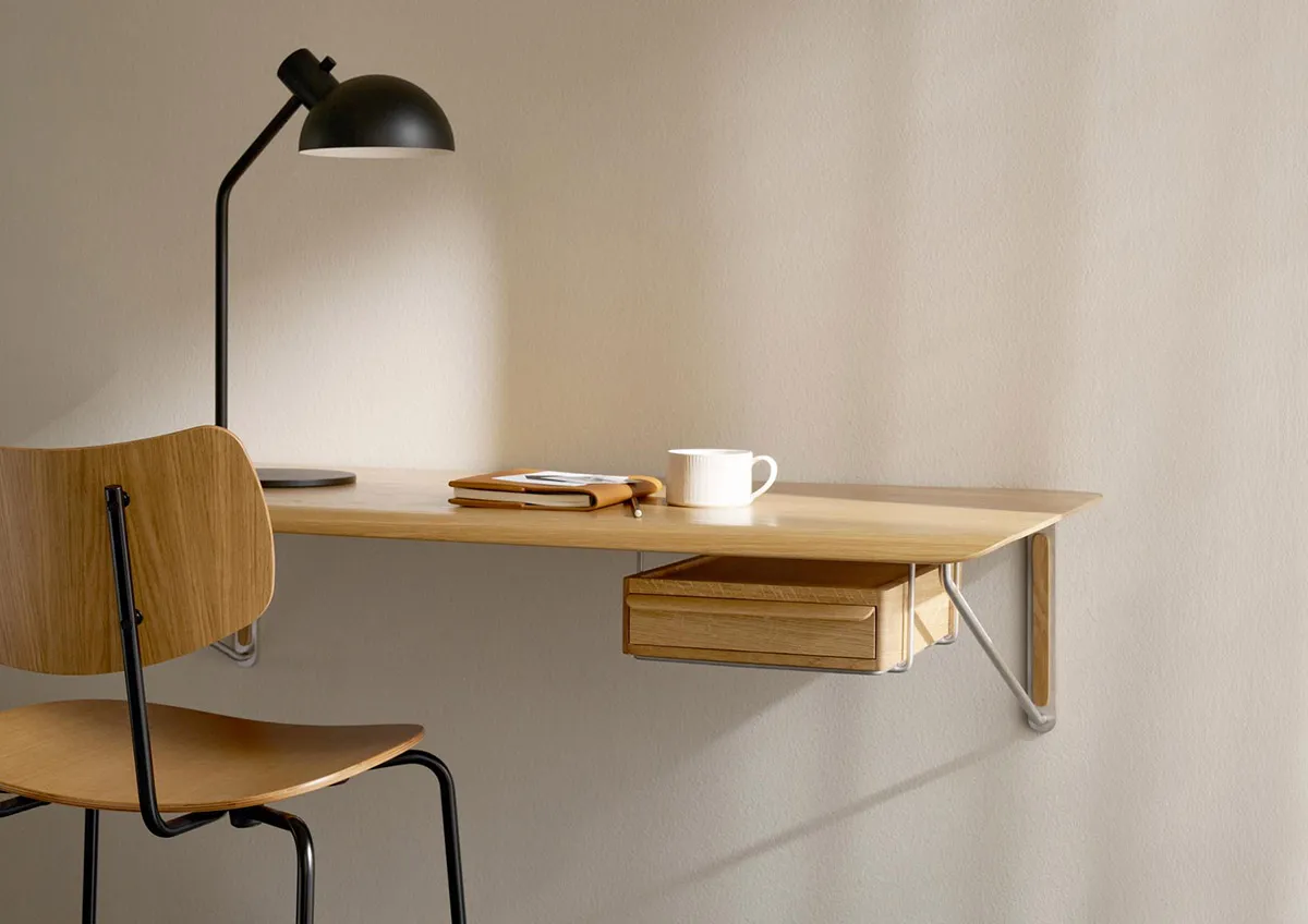 Referring to his Wall Desk, Anker Bak says: “People are always at the core of my designs. With this desk, I consciously made room for both work and leisure – side by side. When our surroundings adapt to us and our lives, it means we have more time and energy for both work and family. I have first-hand experience of this. That’s why this desk also tries to make the traditionally heavier or industrial desk a completely simple and functional piece that will fit into any home, living room or office.”