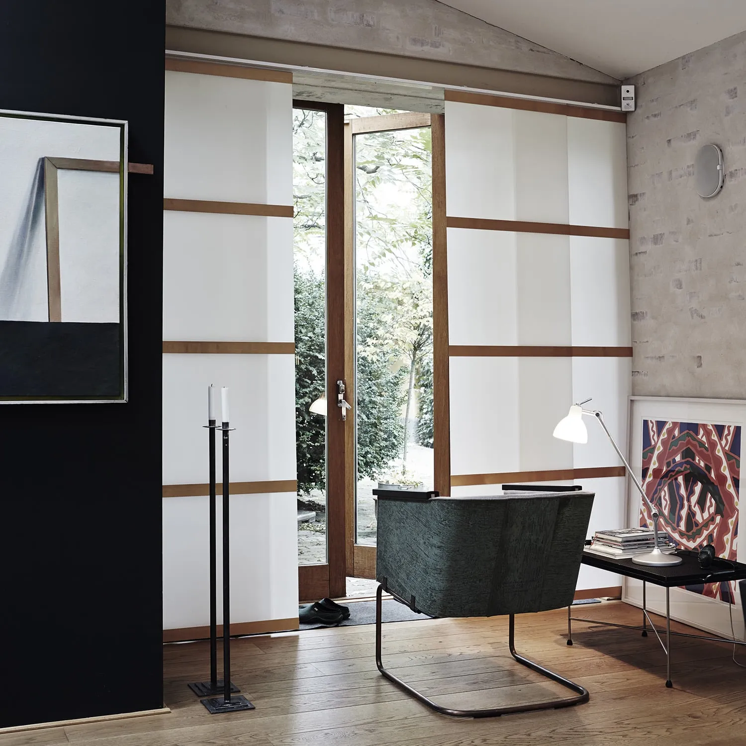 Ann Idstein created the Panel System at the beginning of the 1990s, developing a new kind of panel curtain by applying wooden slats from the Venetian blind department to fabrics.