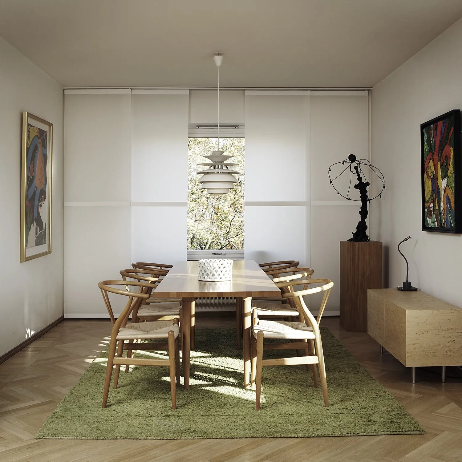 The Swedish manufacturer has refined this system over three decades, establishing it as a versatile solution for room dividers, sliding doors, and window treatments.