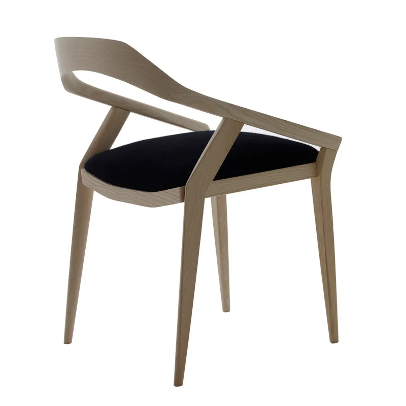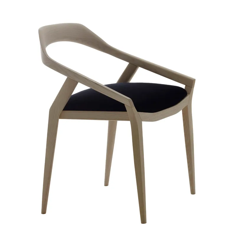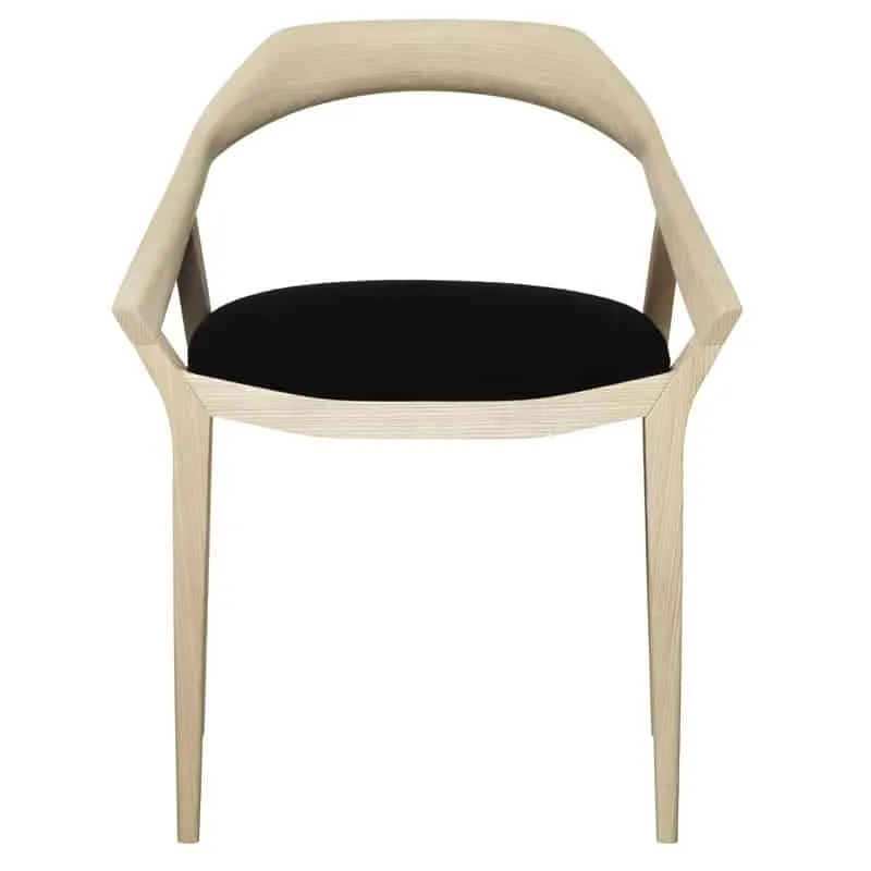 wooden chair in solid ash wood with upholstered seat in fabric or leather.