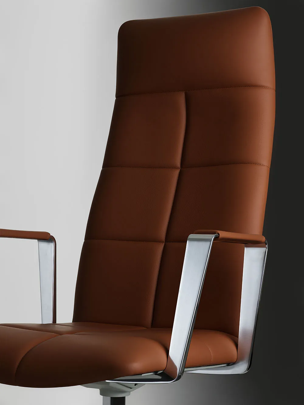The successful chair series Archal, by designers Johannes Foersom & Peter Hiort-Lorenzen, was extended in autumn 2018 with the larger, more generous Archal XL model. The XL offers a more generous seat width, wider armrests and extra padding, and comes in both a conference and a lounge version. To further increase comfort and convey a softer impression, the Archal XL can now be fitted with leather-upholstered armrests.