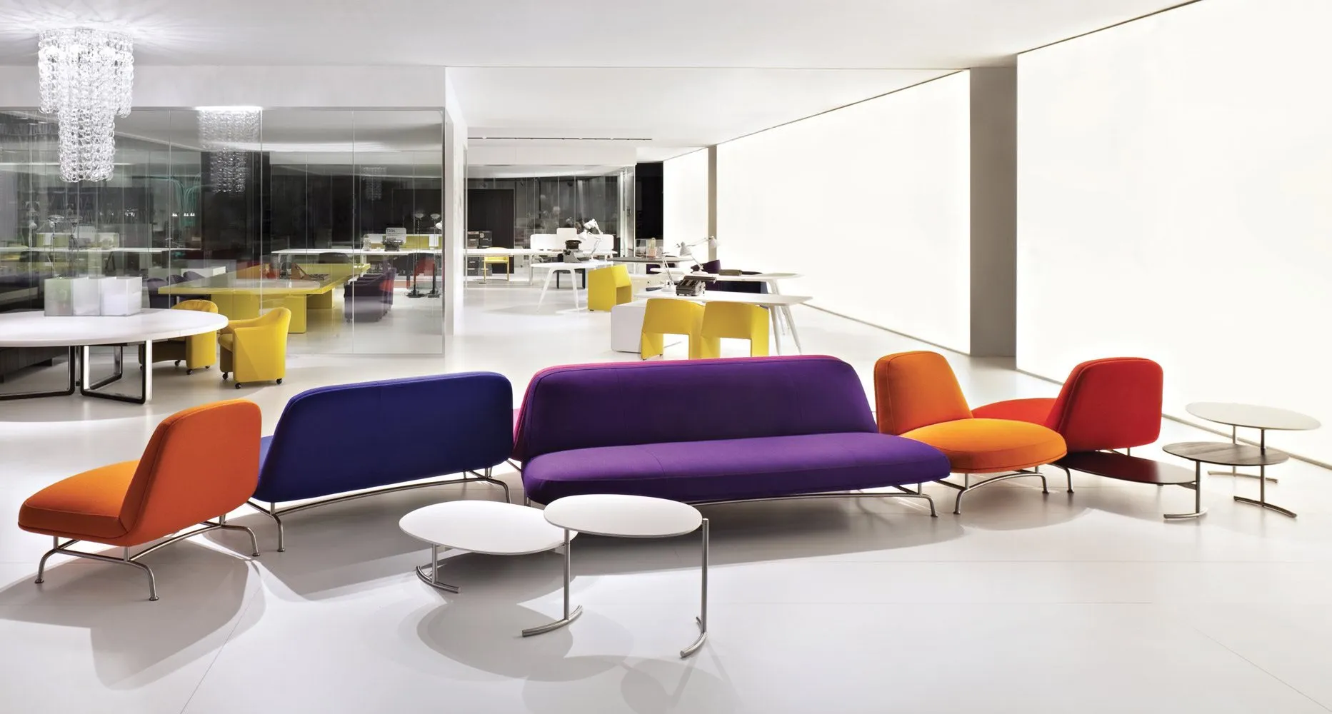 This landscape of small islands can be clustered or attached in groups or located separately. Multiple configurations can therefore be created to respond to the needs of various types of environment: domestic, office or lounge.
