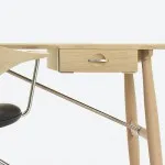The desk marks the beginning of Wegner’s work on combining the sharp steel and the sculptural solid wood in the most elegant and well-balanced solutions. In this respect the desk precedes such unique classics as the Swivel Chair, the Cross Legged Table and the pp75 table.