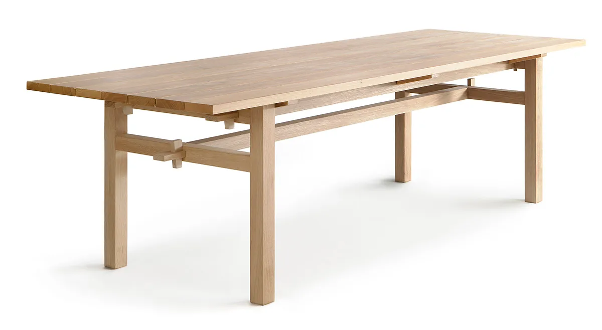 Arkipelago table for outdoors is always made of oak, and the top consists of planks. The indoor version can be made of oak or ash, and the table top can be also solid.