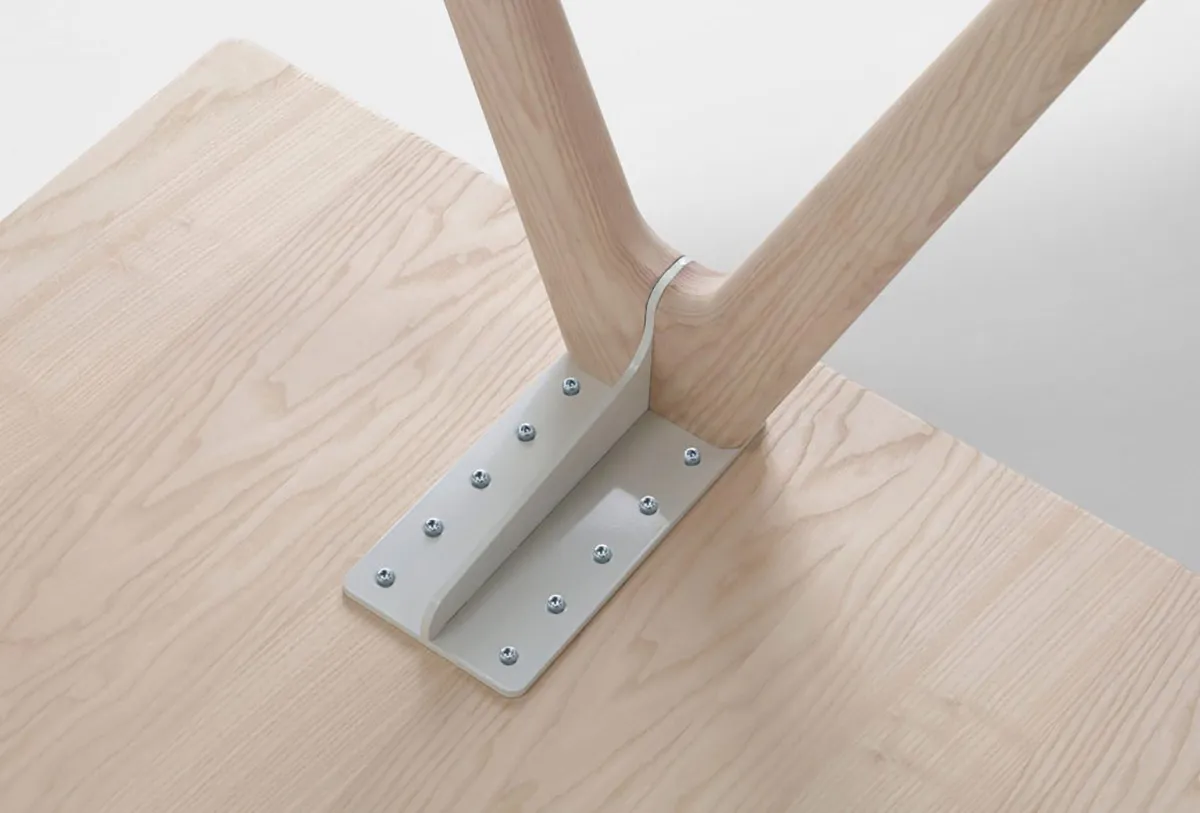 The collection’s signature element is the continuous metal fitting in the leg arches, serving both as structural reinforcement and visual identity. This detail transforms traditional craftsmanship into a modern design statement while maintaining the timeless appeal of Scandinavian furniture making.