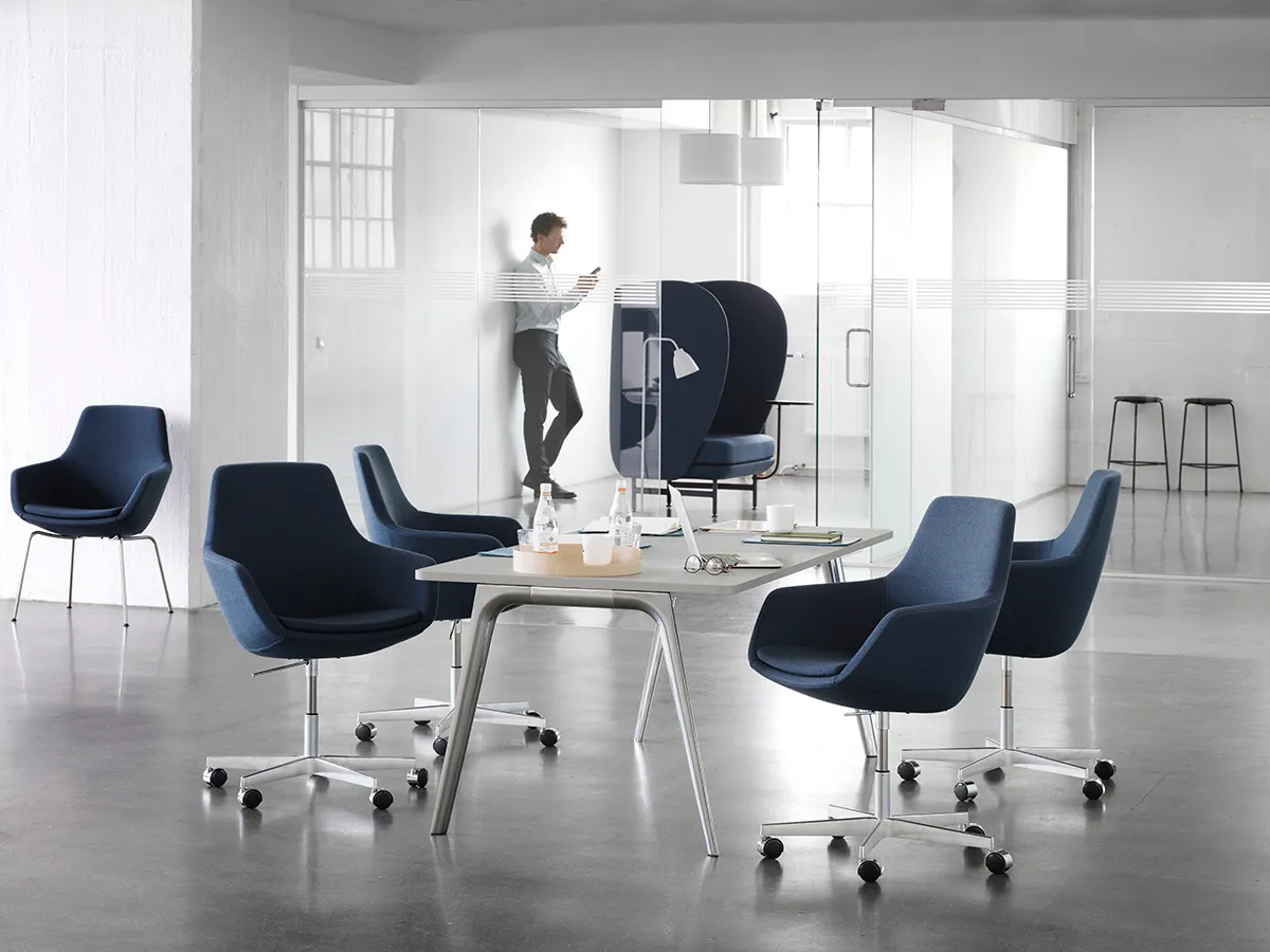Little Giraffe™ offers a more open, lighter presence compared to its throne-like sibling. The lower profile makes the chair less dominant in a room, increasing its versatility across different interior settings. This adaptability extends its application from restaurants to home offices, lobbies to bedrooms, paradoxically making it suitable for environments beyond the original hotel context.
