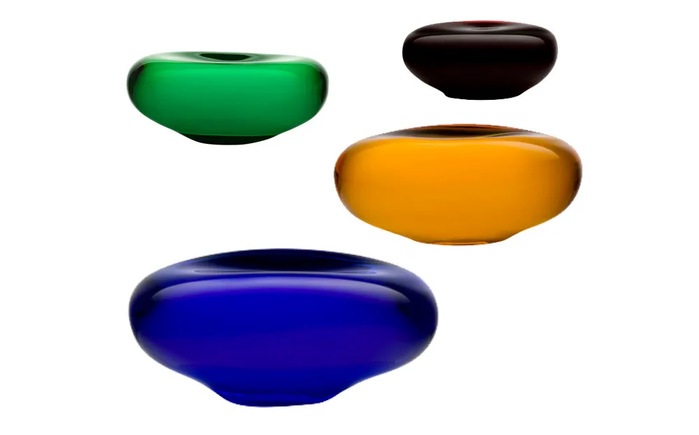 “What’s fundamental is that they are all solid glass, not hollow. Thick glass is essential for bringing out the optics and the reflections. These pieces crystallize the magic of molten glass for me,” says Harri Koskinen.