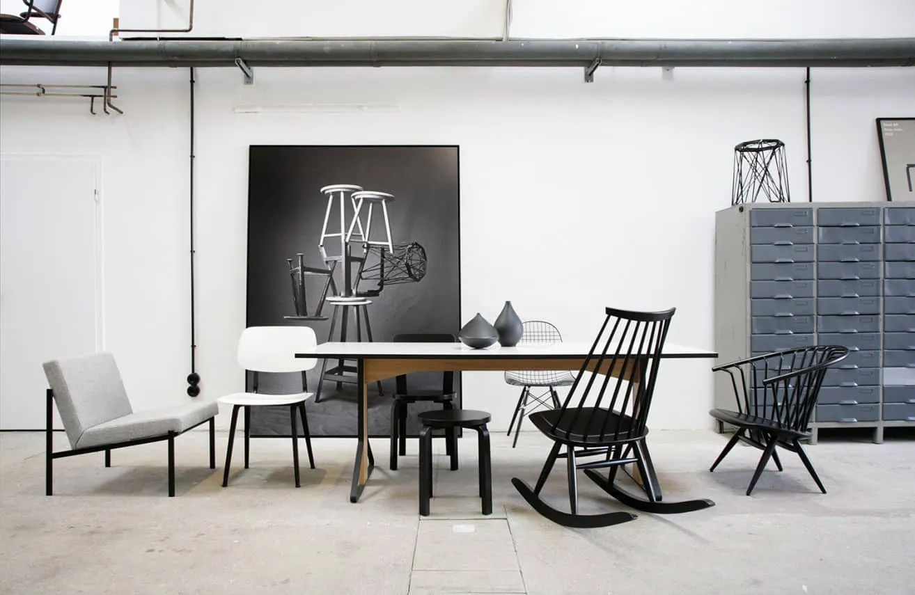 Located in a former fish smoke house, PLY displays prewar vintage originals along with modern classics by designers such as Alvar Aalto, Ilmari Tapiovaara and Jean Prouvé. For the Artek residency the showroom space was renovated and extended to include collaboration highlights such as the Stool 60 Workshop, which allows clients to customize Alvar Aalto’s Stool 60 on site, made to order after their own colour lacquer and wood stain preferences.