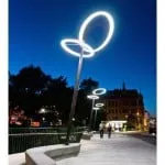 Kaptensbron (The Captain’s Bridge) is Malmö’s busiest pedestrian and cycle path with over 10.000 pedestrians and cyclists per day. The 50-year-old bridge was in dire need of renovation and the decision was taken to demolish the old and build a new one that is now built. Along with the bridge, ellipses in two different sizes are floating, fitted with LED and placed at 6 m high poles in carbon fiber. The fixtures are made of carbon fiber as well, made in the Ateljé.