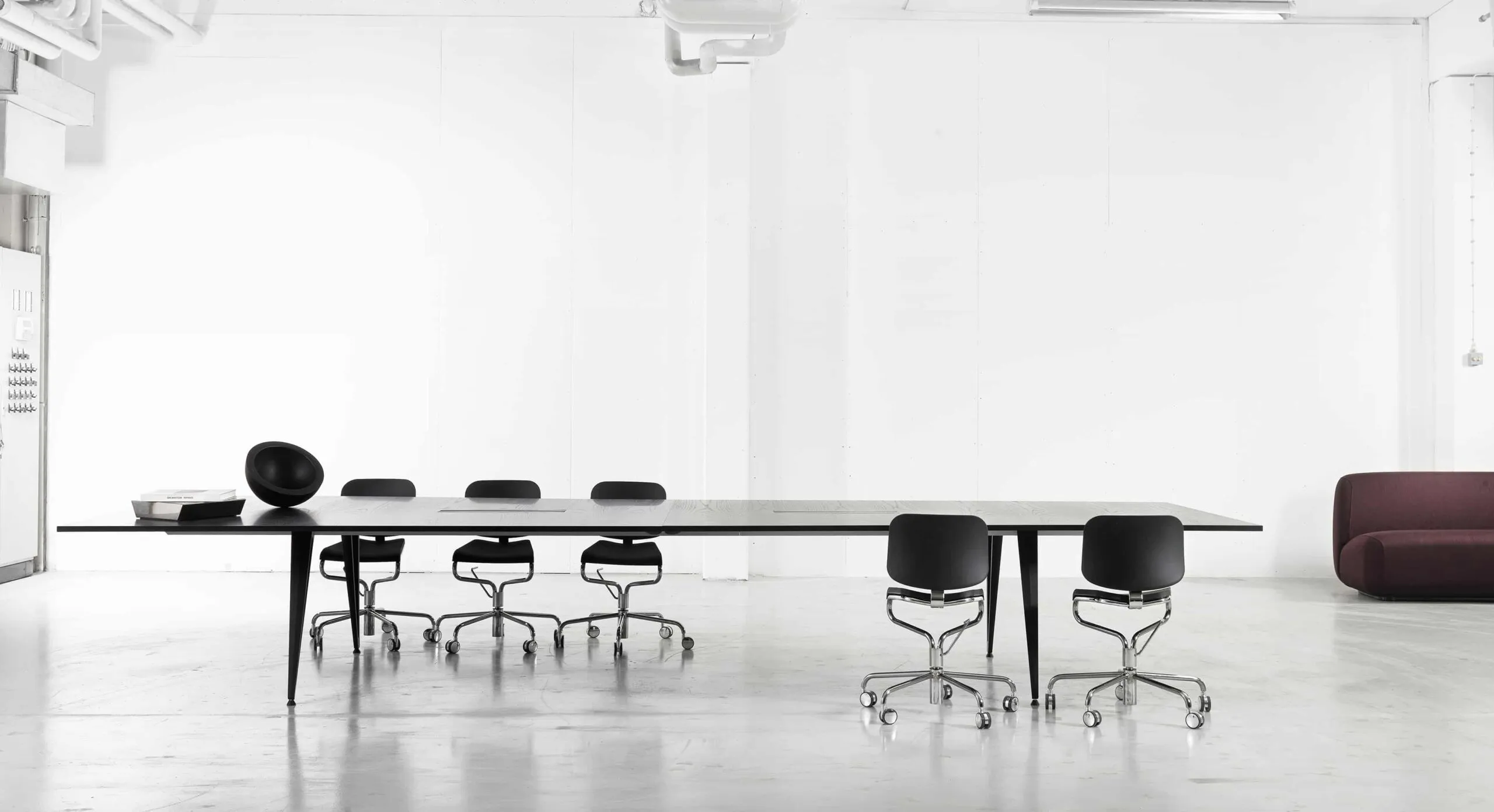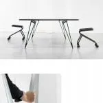 Legs can be positioned or re- positioned along the mounting beam to accommodate user numbers and user functions, all with minimal interference under the table.