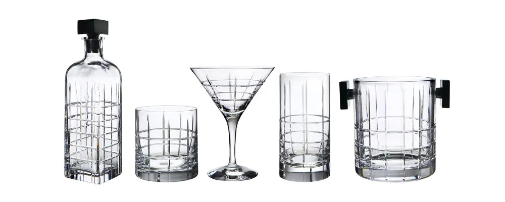 Jan Johansson, the undisputed master of Orrefors crystal, makes his latest contribution to the Orrefors collection with Street, a series of bar items. The hand-cut grid pattern suggests Manhattan’s famous street network, while the symmetrical décor lends an outspokenly masculine air to the series as a whole. The ice bucket, besides the decorative cutting, features two square, black handles, while the stylish decanter has a square, black stopper. The series is completed by a martini glass and a set of sober black coasters.