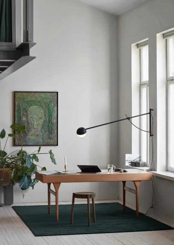 The Balancer wall lamp brightens the interior with a uniquely adjustable light source.