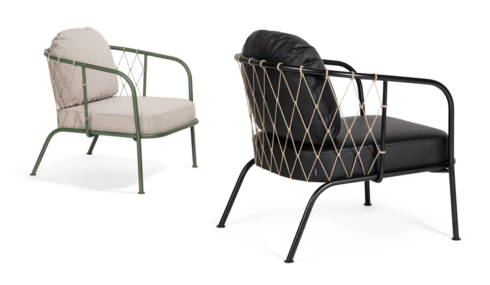 Yarn comes from “The Kinship Method” experimental collaborative project. Based on the armchair, a sleek easy chair has been developed.