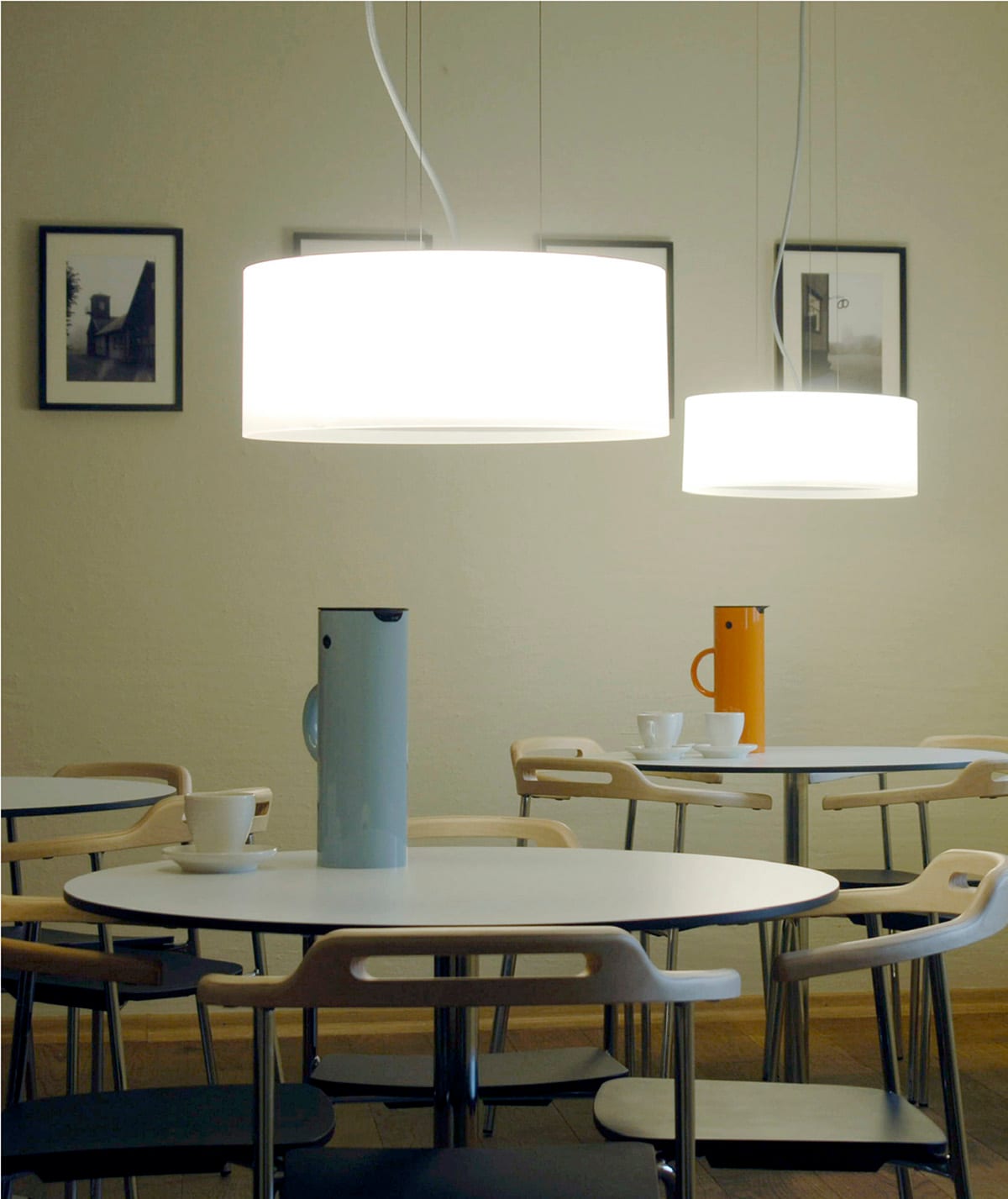 An efficient luminary where focus is on material and function. The whole family can be delivered with DIM for individual requirements on light.