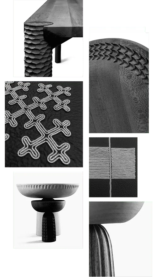 The exhibition Beyond Black at JUS in Stockholm integrates Bosnian woodcarving with Sami-inspired pewter thread embroidery. The word Black guides one to the unique collaboration, that is shown in the fashion store JUS, Brunnsgatan 7, in its very special curated environment.